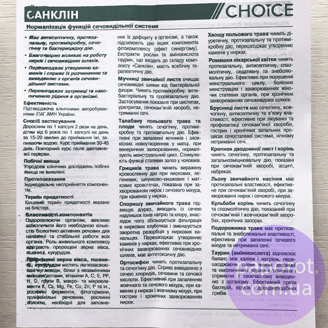 Санклін - для мочевідной системи CHOICE (Чойс)