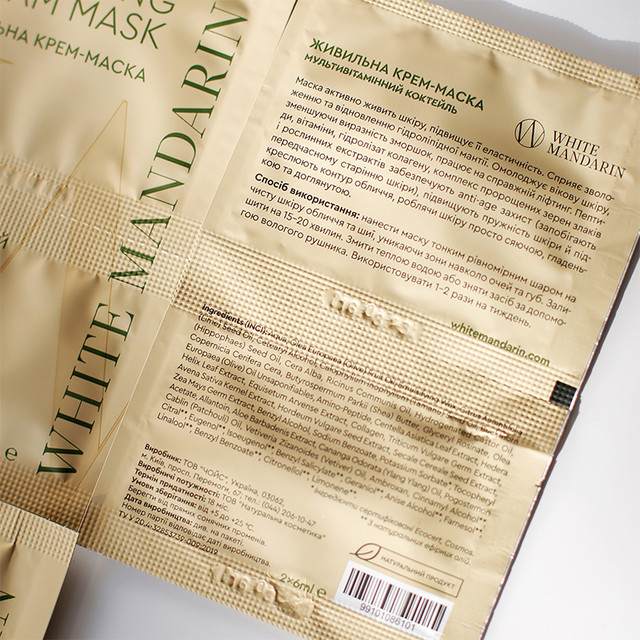 - У Поживною крем-масці «Мультивітамінний коктейль» White Mandarin відсутні штучні барвники та ароматизатори, які досить токсичні і можуть викликати алергію.